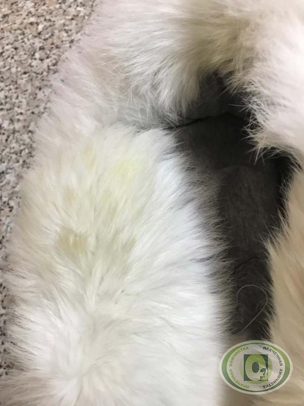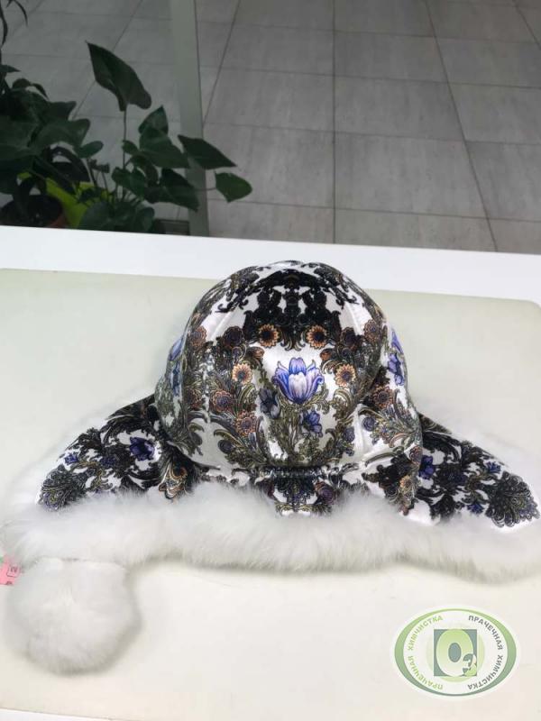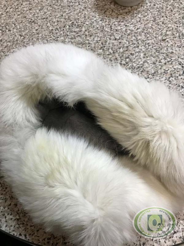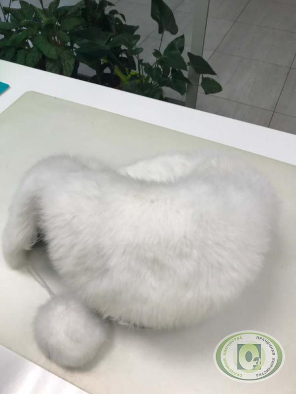 Химчистка и удаление желтизны меха на зимней шапке
