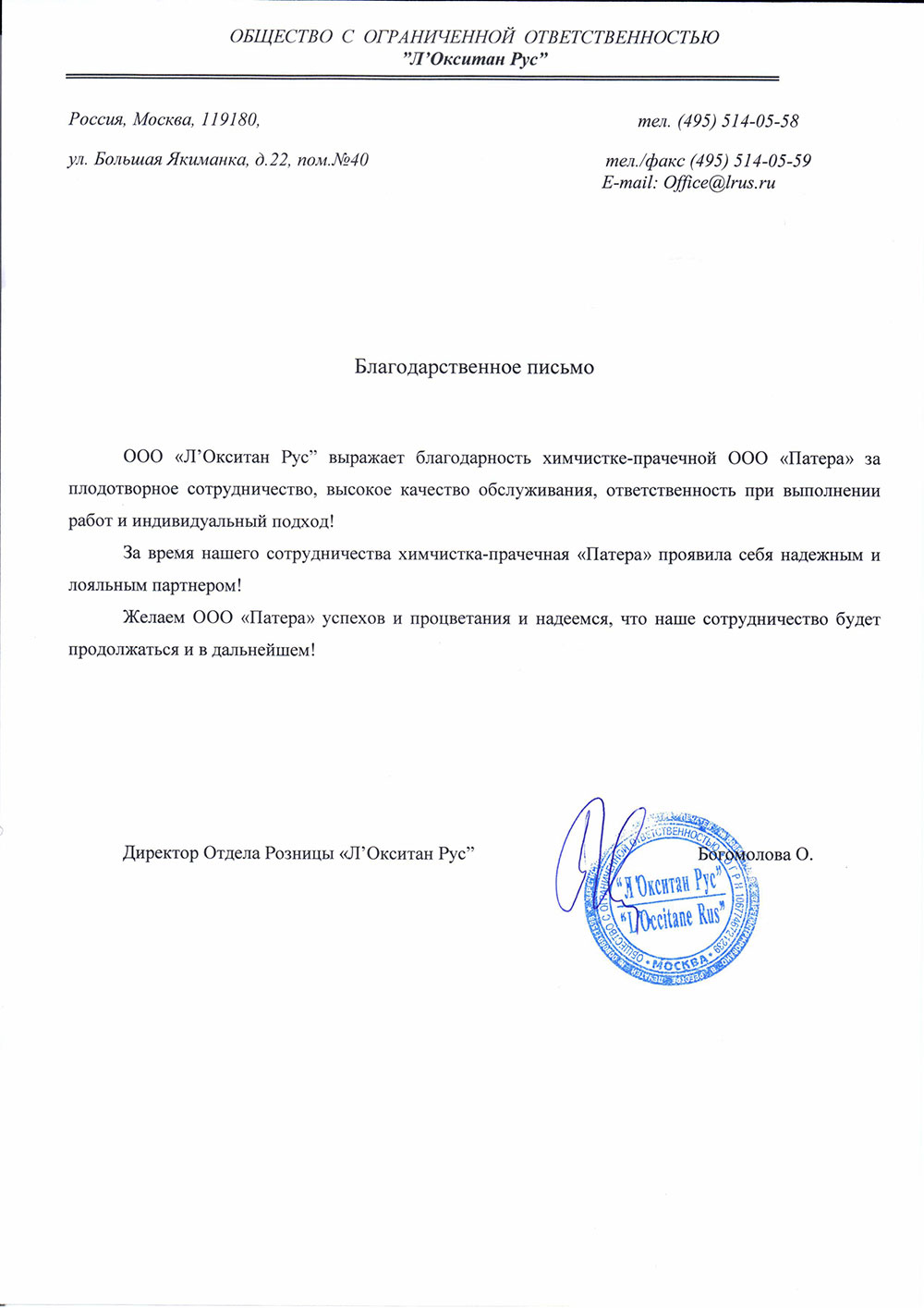 Надежда Багрец, директор, химчистка "О-три", г. Москва:
