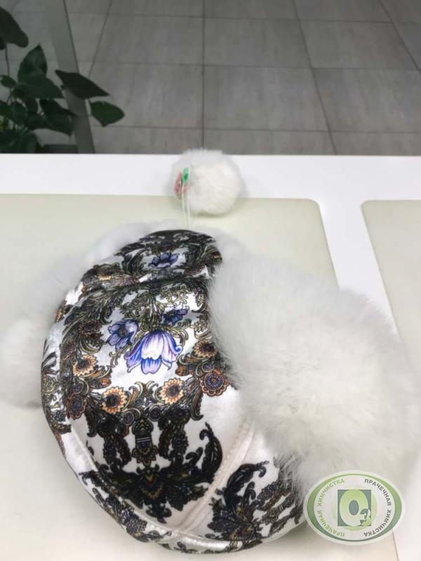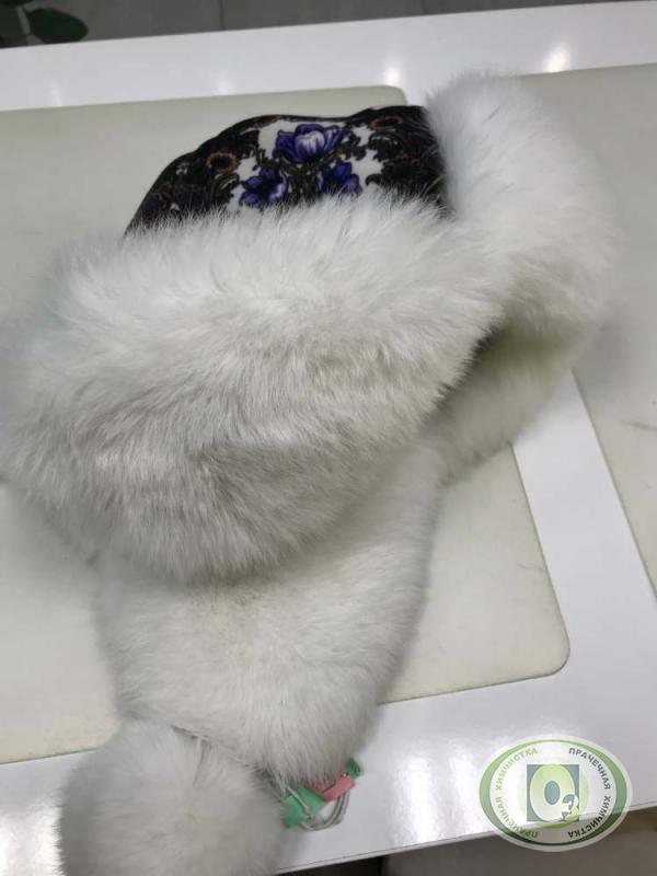 Химчистка и удаление желтизны меха на зимней шапке